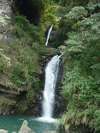 參觀完了「小烏來瀑布」、「風動石」,再往下走約10分鐘,就可以到「龍鳳瀑布」。這個瀑布分為上下兩層,流水分層而落,一個命為「龍瀑」,另一個命為「鳳瀑」。跟小烏來瀑布的壯闊相比,龍鳳瀑布顯得小家碧玉多了。