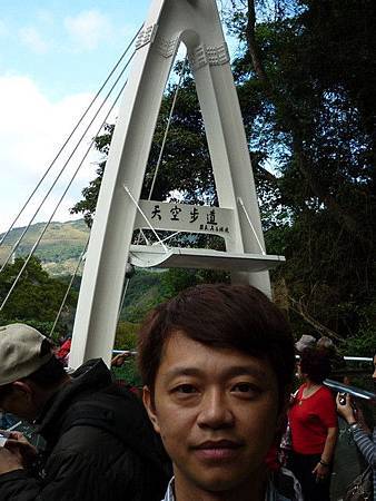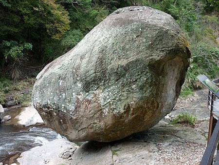 天空步道旁邊,就是有名的「風動石」。一塊天落巨石(5公尺高,估約20公噸),奇妙地以大約0.5平方公尺的小小接觸點,平衡地立在溪旁的斜坡上,好像端午節豎立雞蛋一樣。聽說已經好百年甚至可能幾千年了,卻一直不倒。歴經過大颱風、921大地震,它還是不動,真的很妙。(PS:民國102年7月13日,強烈颱風蘇力登陸台灣,造成這顆風動石終於倒了,滾落溪床。)