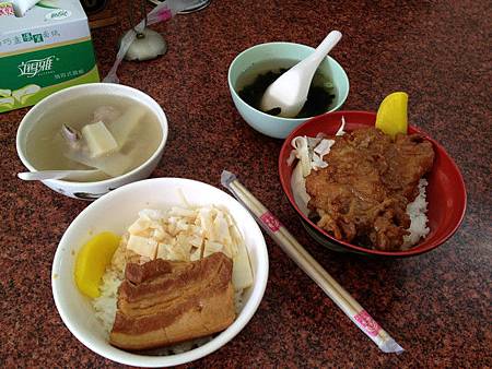 因為只計劃了三天兩夜,所以決定去日月潭及谷關溫泉。幸好這幾天天氣很好很幫忙喔!也多虧政府多開了幾條國道,讓我這次覺得從桃園去日月潭是出乎意料地方便跟快速。其實我早上將近快11點才從桃園出發,經由國道1, 到新竹系統交流道改走國道3,一路到南投切入國道6,從埔里交流道下,才中午1點剛過。查了手機APP程式 KiDoWi 找附近有名的餐廳,我們就到了埔里鎮有名的「李仔哥焢肉飯」。在西安路跟信義路交叉口,很好找。