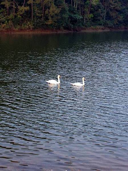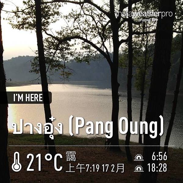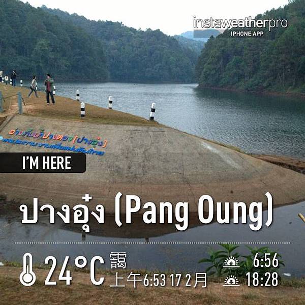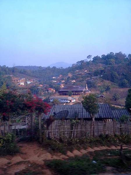 即使如此,還是開了快三小時才到第一站:邦武湖(Pang Oung/ปางอุ๋ง)。正好七點看日出。這裡在快到湄宏順時,要依路標左拐進一條叉路,然後一路再往上爬差不多再 40 分鐘才能到,有些坡很陡。這裡快到泰緬邊界了,海拔約 1200 公尺。這個湖其實是一座水庫,可以露營過夜。來這裡的途中,路邊高山景色很是迷人,當地居民的木造房屋建築可說是相當簡單破舊,過著與世無爭的生活。我還看到有人清早牽著一匹馬走出門咧!但基於邦武湖是水庫區,自然就有建設,還有花園,就不比外面的邦東村 (Ban Pang Tong/บ้านปางตอง) 了。