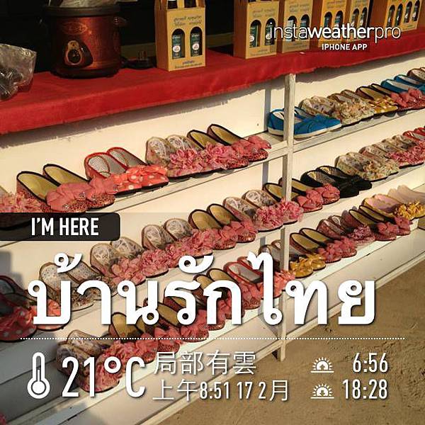 待了一小時,八點準時出發去國民黨村(Ban Rak Thai 或 Chinese KMT Village/บ้านรักไทย)。這裡更接近泰緬邊界,居民也算是孤軍的後裔。這裡有個湖,房屋依湖畔而建,到處是寫繁體中文及泰文,居民大多經營餐館或賣茶葉、繡花鞋、茶具,房屋當然也是簡單克難型的。我逛了逛,遇見一位賣茶葉的大嬸,她說她在這三、四十多年了,那想必是出生就在此的人,她會講不少中文喔!店裡賣的,除了茶葉是台灣來的種子,然後自己種的之外,其餘其實是從西雙版納運送過來的。原來這條從 1095 分叉出來的公路,可以經緬甸通到西雙版納呢!我們早餐在此解決,餐廳放的是早年的中文老歌,鄧麗君風格的歌。