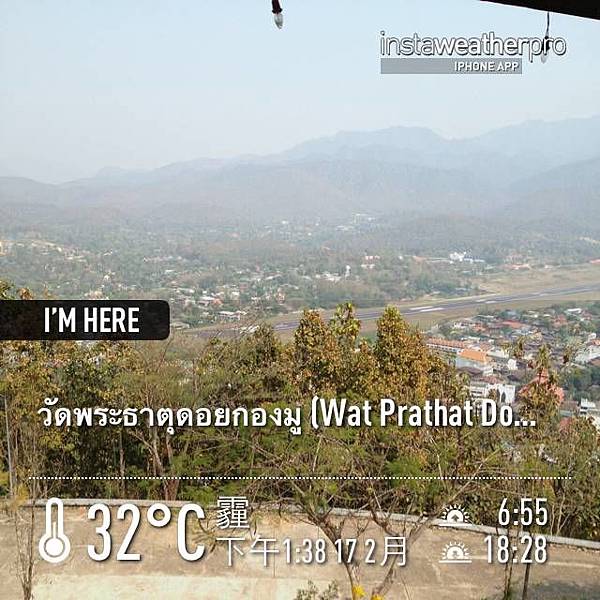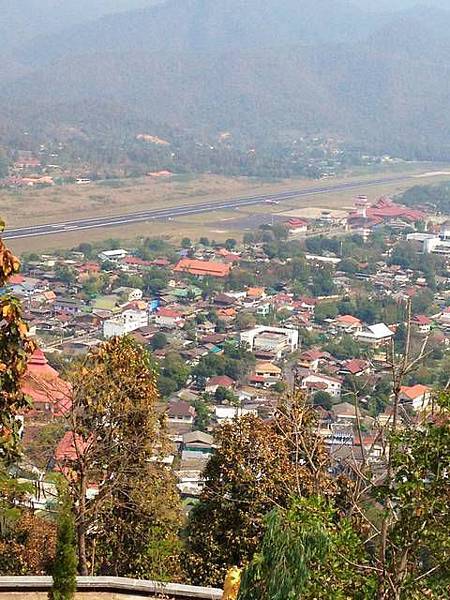 午餐就是湄宏順市內吃,之後到恭母寺 (วัดพระธาตุกองมู/Wat Phrathat KongMu)。山上的寺,可以瞭望整的湄宏順市區。中間是湄宏順機場。