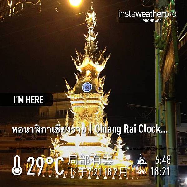 清萊華人相當多,很多地方都有中文,連路牌都有繁體中文,簡直全城都是唐人街。市中心有個漂亮的鐘樓,在一個十字路口。它是國家級的藝術師設計的,整個金碧輝煌很好看,晚上八點會有七彩燈光表演,還會播好聽的傳統曲子,一定要來看。
