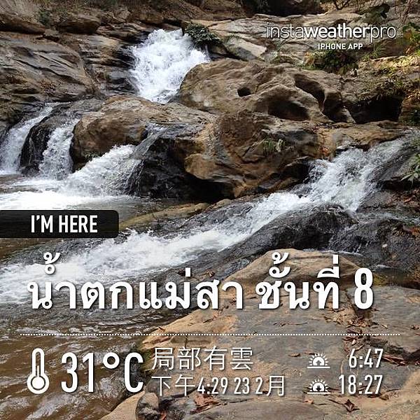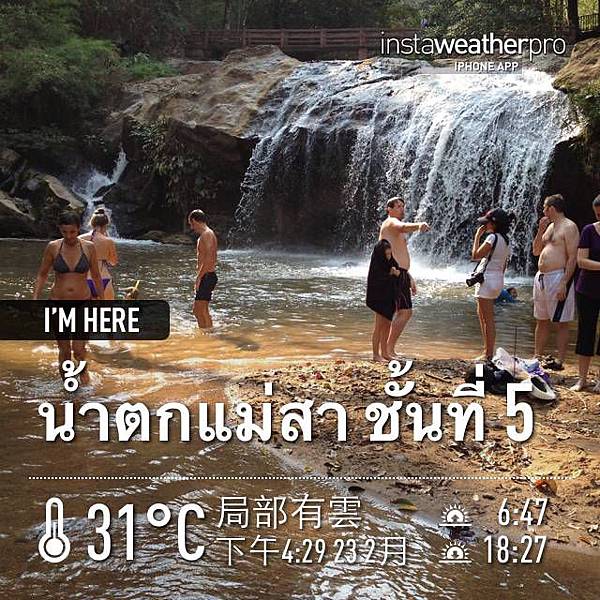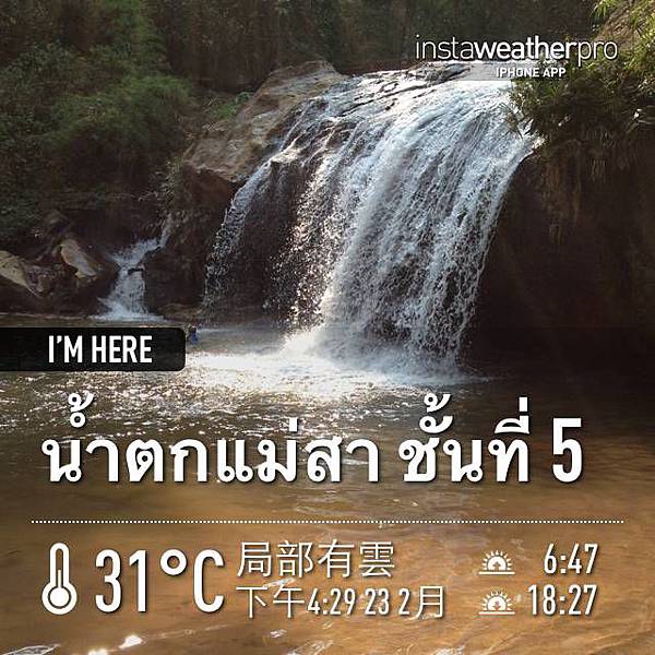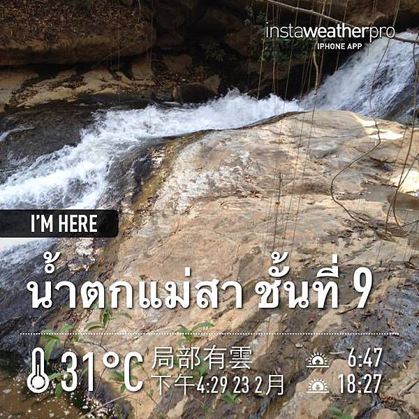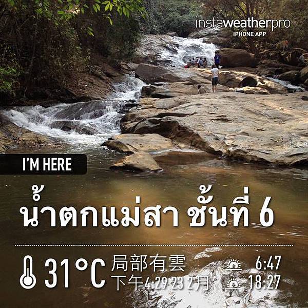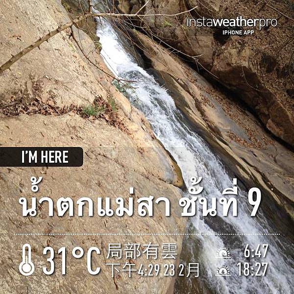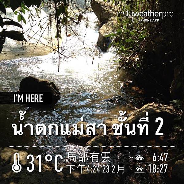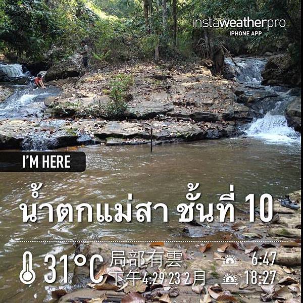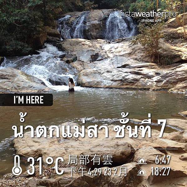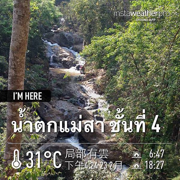 另外去了個之前沒去過的地方:美莎瀑布 (น้ำตกแม่สา/MaeSa Waterfall)。這瀑布是十層次的瀑布,落差不太大,但有十層也稱一絕了。若有空,建議可以在此待上半天,好好享受森林步道,慢慢探索這十層瀑布。這十層蠻連續的,距離都不遠,所以走完十層其實不累。很多人會來玩水,或席地野餐,此地目前為止還沒有旅行團來噢,還算優。