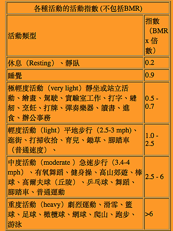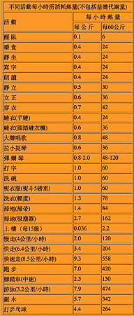 你的體重 X 熱量單位 = 每小時所消耗的熱量