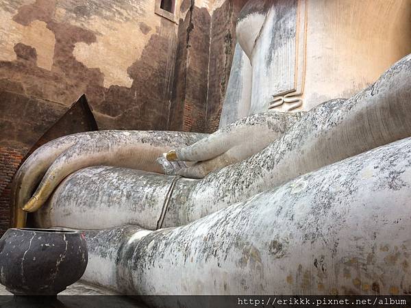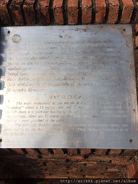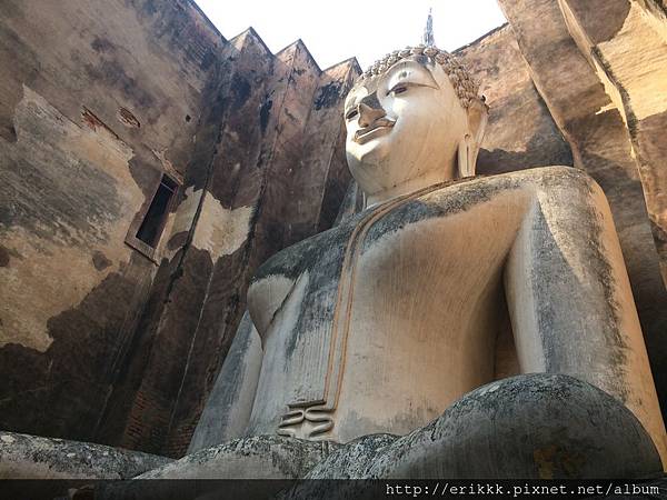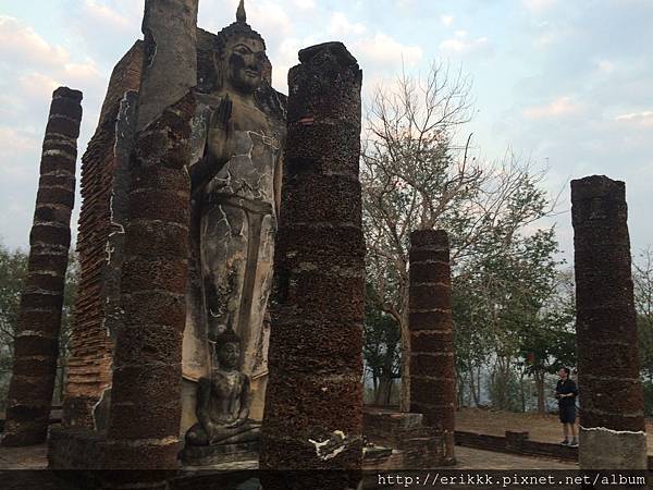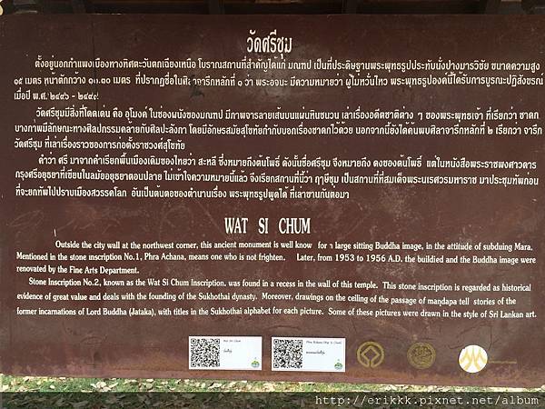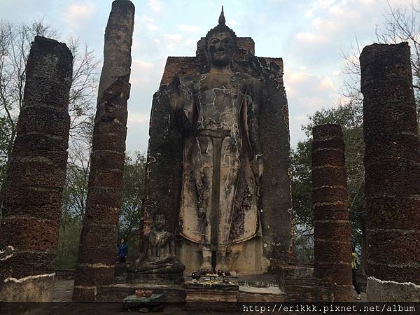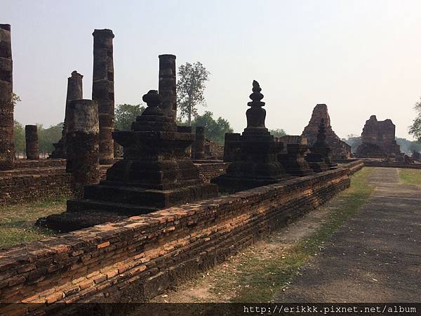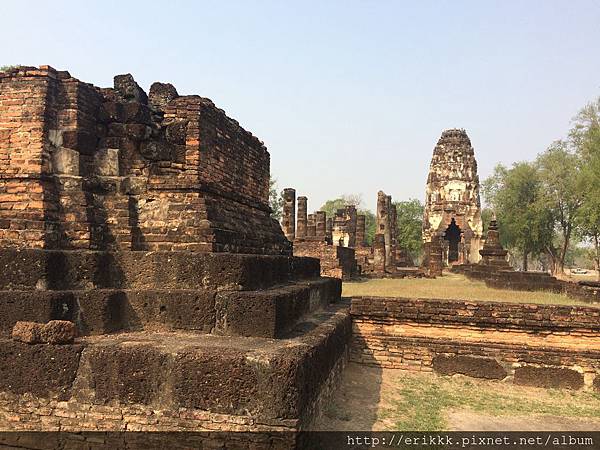 免費參觀。原來是素可泰的行政中心,原址上原本有三座高棉式的主塔,但至今只剩一座是完整的。到這裡看到被火燒過的焦黑㾗跡,還有每一座佛像雕刻都被砍了頭,心中不勝唏噓。