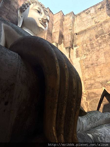 這裡最著名的就是說話佛。據說有一次高棉軍隊攻打素可泰時,有2個素可泰的小兵躲在巨佛的後面,他們交談的聲音被攻打來的高棉軍隊聽到,誤以為是佛像在說話,因此嚇得立刻撤兵了!素可泰贏得勝利。但民宿老闆告訴我,這只是傳說而已,事實上是當時的皇帝納黎宣 (สมเด็จพระนเรศวรมหาราช) 正計劃要攻打高棉,而講了一個故事,以提振士氣而已。