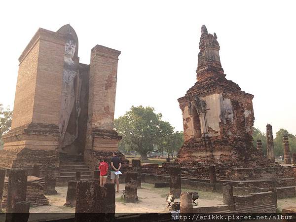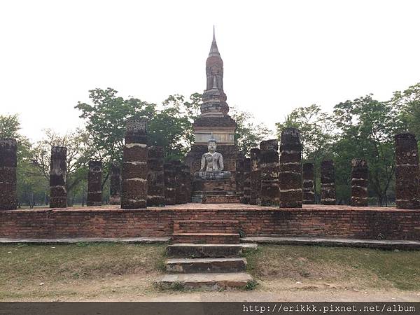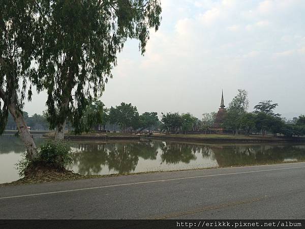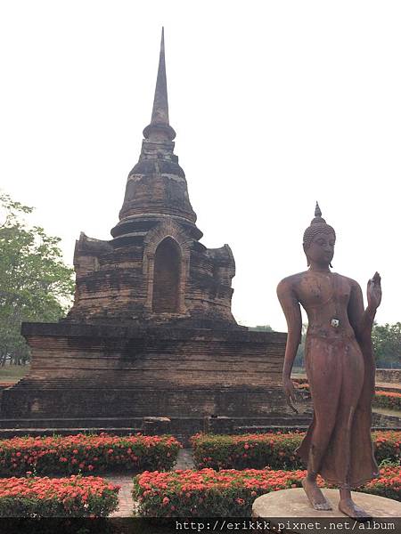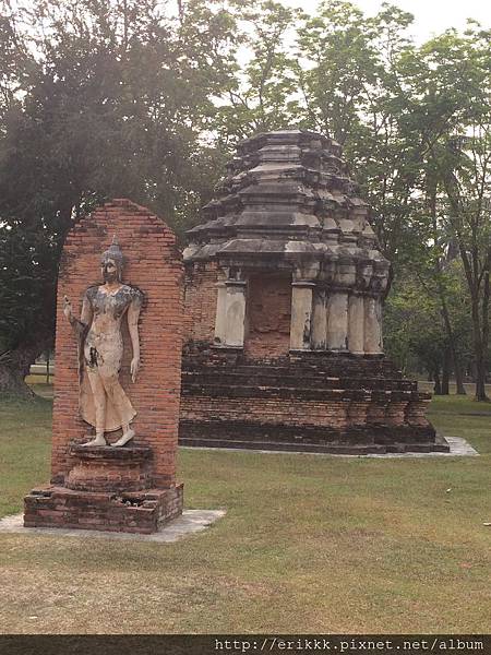(3)撒西寺 วัดสระศรี (Wat Sa Si):這座寺廟位在水中央的島上,特別的是這裡有一尊行走佛。一般來說,很少看到佛像是行走的姿態的,而且這尊佛像的線條很美,感覺好像真的在走路一樣。