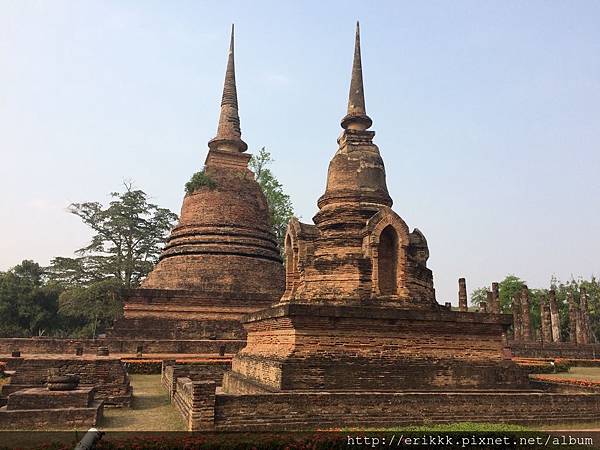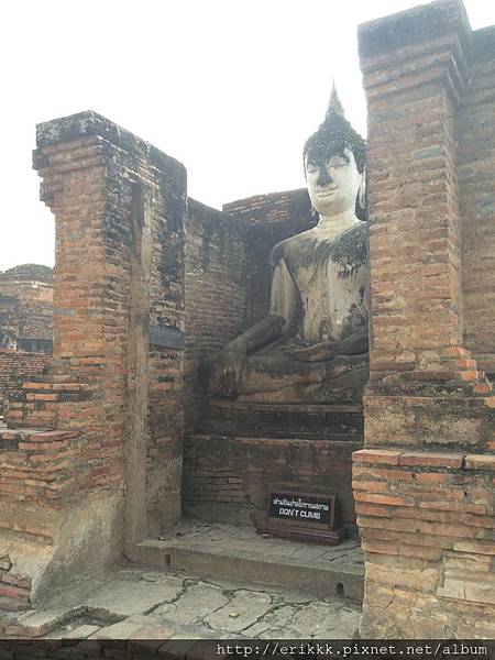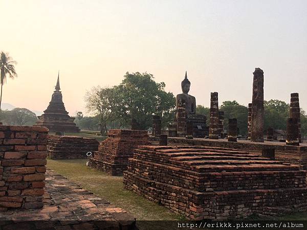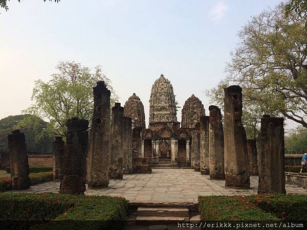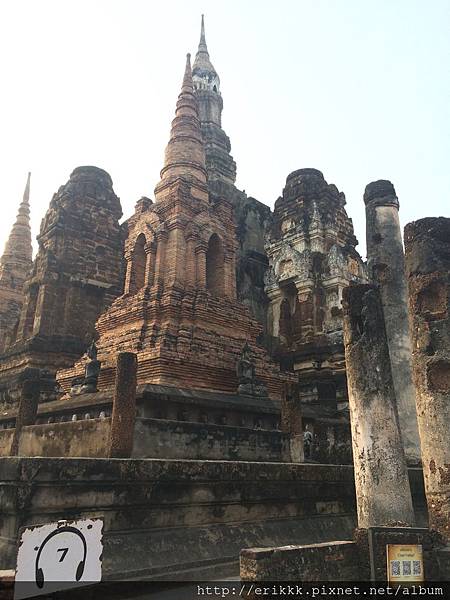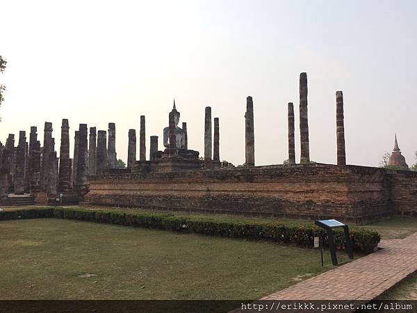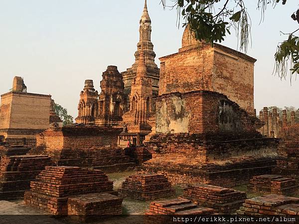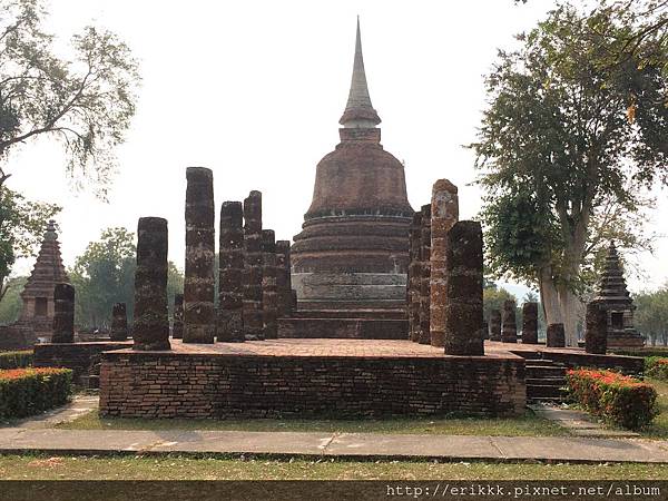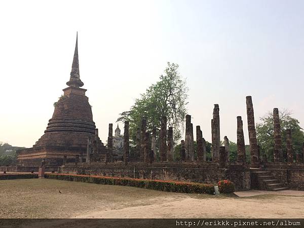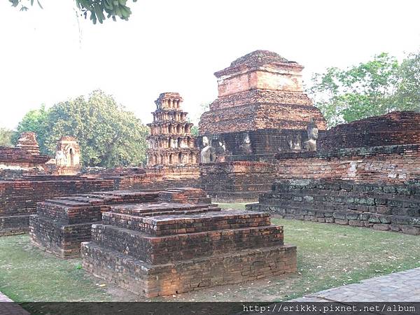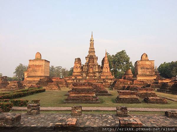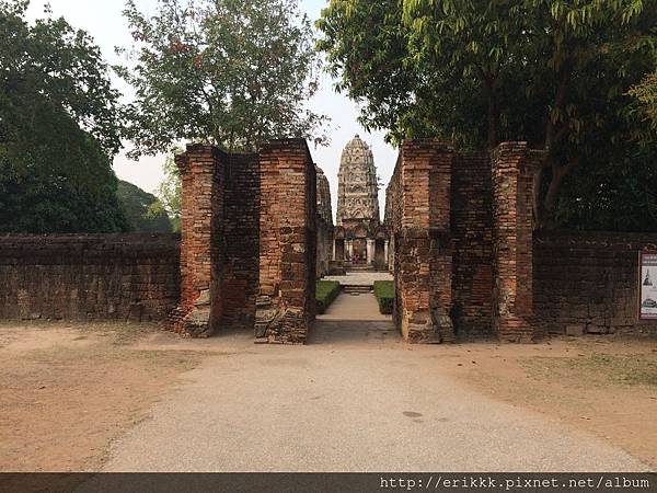 (1) 瑪哈踏寺 วัดมหาธาตุ (Wat Mahathat):這是園區裡最大、最重要、最漂亮的寺,一定要來感受一下,想像一下古時候的泰國人在其中穿梭的感覺。