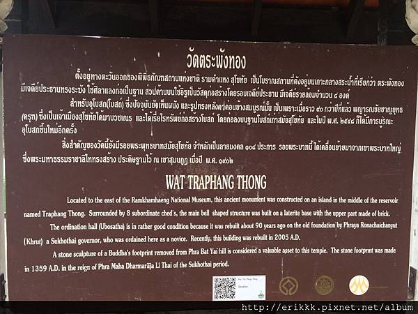 之後,順道看了就在旁邊的 วัดตระพังทอง (Wat Tra Phang Thong,打邦通寺)。這裡有一個小小的神話故事說給大家聽: