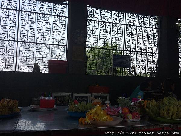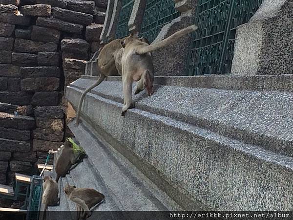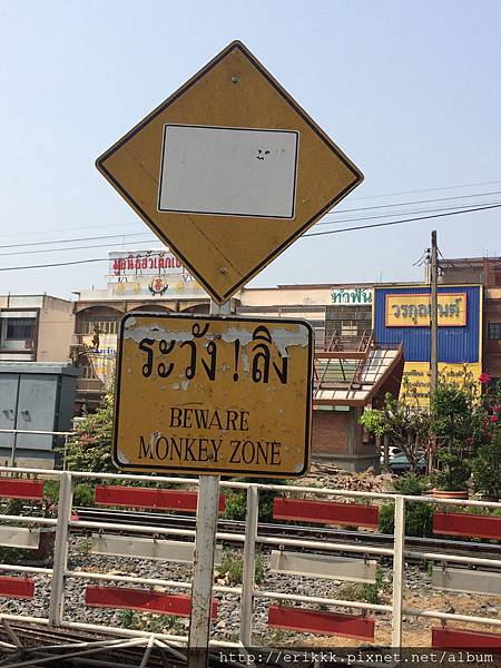 「普甘院」ศาลพระกาฬ (San Phra Kan),這裡很多猴子,還有個「猴子區!小心」的警告牌。