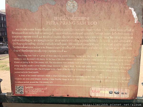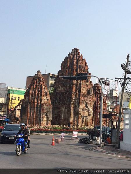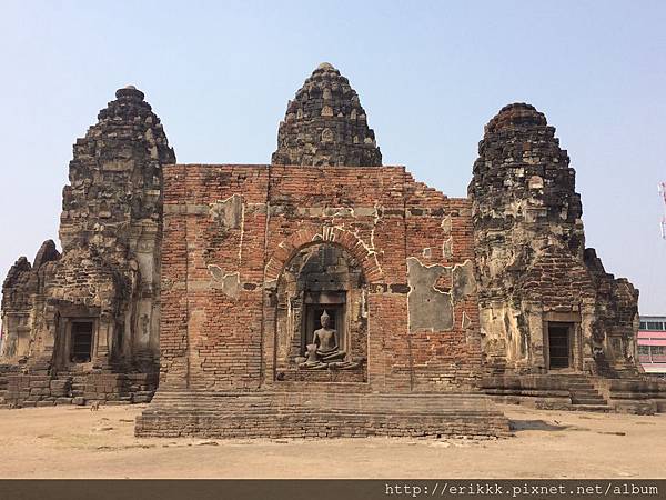 「三佛塔」 พระปรางค์สามยอด (Phra Prang Sam Yot),華富里最有名的古蹟,三座連成一體的高棉式佛塔。正如前面所說,華富里原本附屬於高棉,是故受到高棉藝術的影嚮,三佛塔是可以進去裡面的。進入這裡也是要付費買門票,但今天沒人管,所以我又免費了。注意!這裡猴子超多!