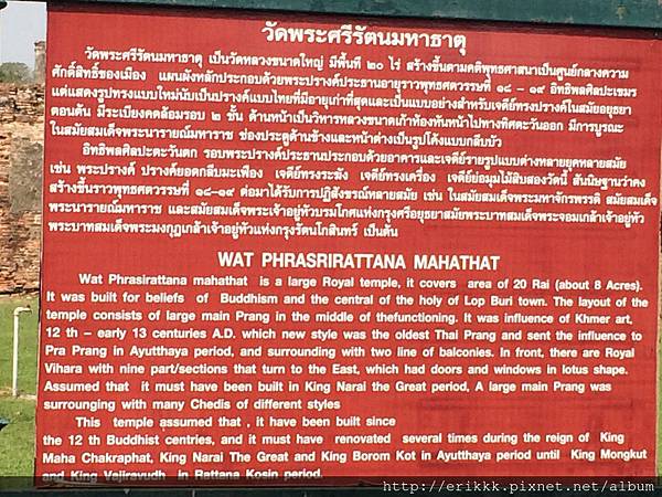 接著是今日重點之一,火車站前的古蹟:วัดพระศรีรัตนมหาธาตุ ลพบุรี (Wat Phra Si Rattana Mahathat Lop Buri),這個古蹟,居然和彭世洛的成功廟同名!這需要入場費 150 泰銖(外國人)。其實我也不是貪小便宜的人,雖常被誤認,但我還是很老實地去買票。售票人無聊地坐在那邊(因為當時還沒有遊客來)我說要買票,還拿出 200 銖,結果售票員還很奇異地盯著我看,我就說明說我其實是外國人,應該要 150 銖。結果,他摸摸口袋,說他沒有錢可以找給我,於是,他說:「就給你免費吧~請吧!」,我~我~我⋯⋯就免費了。